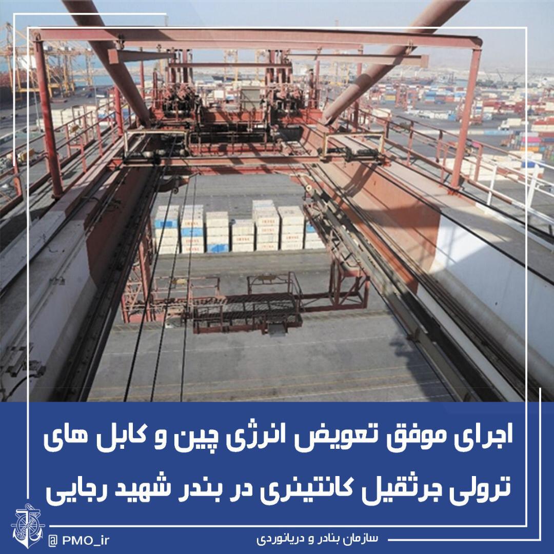 وی ضمن اشاره به تلاشهای اداره تعمیر و نگهداری تجهیزات خشکی بندر شهید رجایی برای خودکفایی کشور در زمینه تعمیرات تجهیزات استراتژیک بندری، خاطرنشان کرد: بر همین اساس، پروژه تعویض انرژی چین(Energy Chain)، کابل کشی سیستم ترولی و راه اندازی گنتری کرینZPMC شماره 18 در بزرگترین پایانه کانتینری ایران، طی 30 روز کاری و با 2 هزار نفر ساعت کار به پایان رسید.