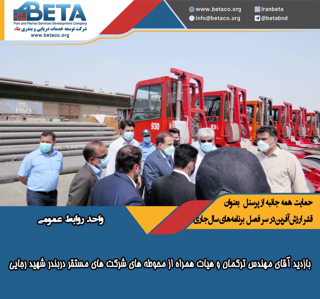 آقای مهندس علی داود ترکمان مدیرعامل هلدینگ به همراه اعضای هیات مدیره در سفری دو روزه به بندر شهید رجایی ضمن بررسی فعالیت ها و اقدامات انجام شده، از بخش های مختلف مجموعه بازدید کردند.