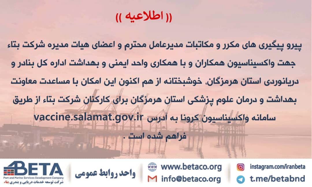 اطلاعیه انجام واکسیناسیون همکارانمان در شرکت بتاء