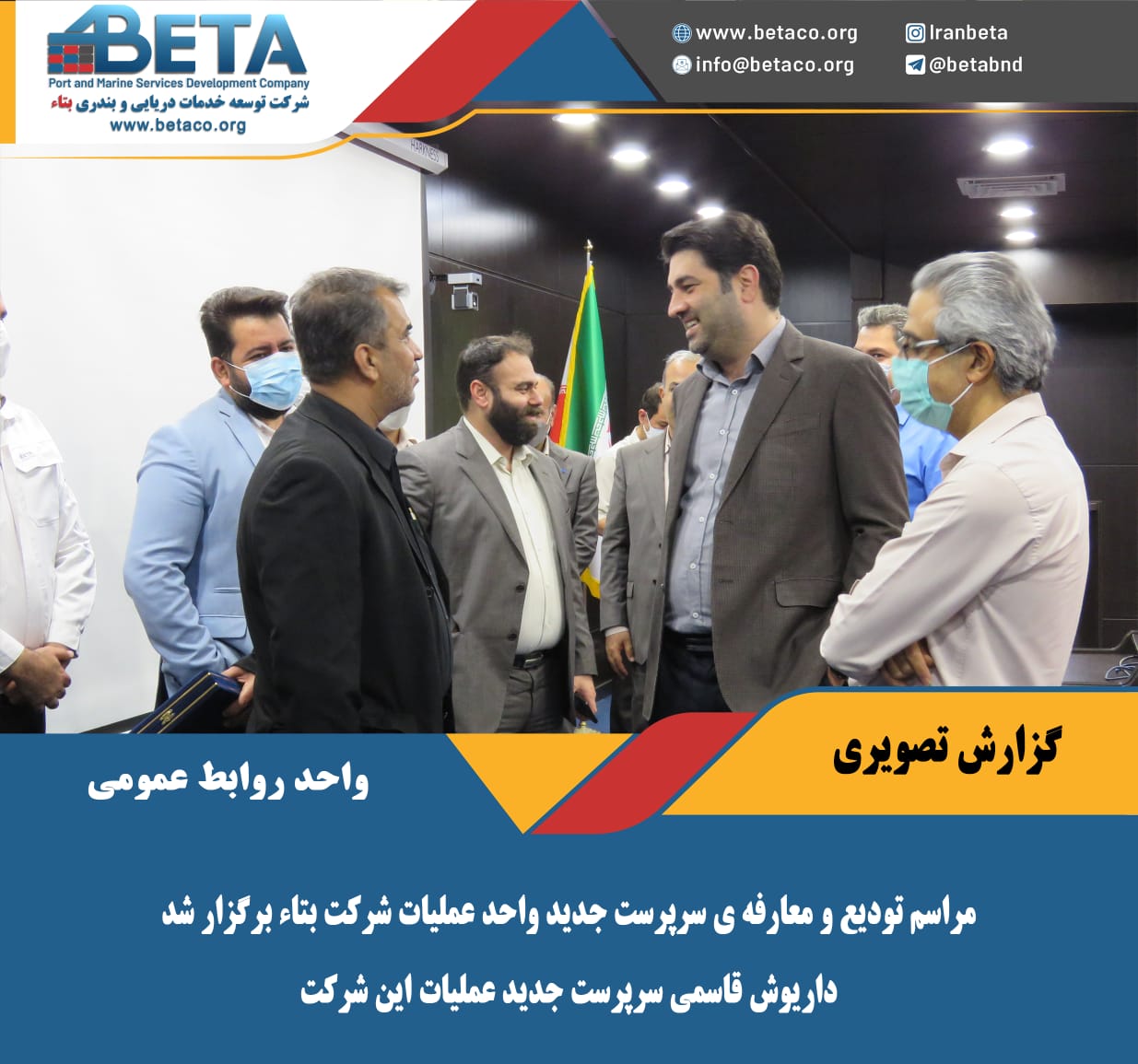 به گزارش واحد روابط عمومی شرکت بتاء، با حضور آقای مهدی قائم مقامی مدیرعامل شرکت توسعه خدمات دریایی و بندری بتاء و معاونین شرکت، از خدمات صادقانه آقای امیر داتام تاریک تقدیر و آقای داریوش قاسمی به عنوان سرپرست واحد عملیات شرکت بتاء معرفی شد.