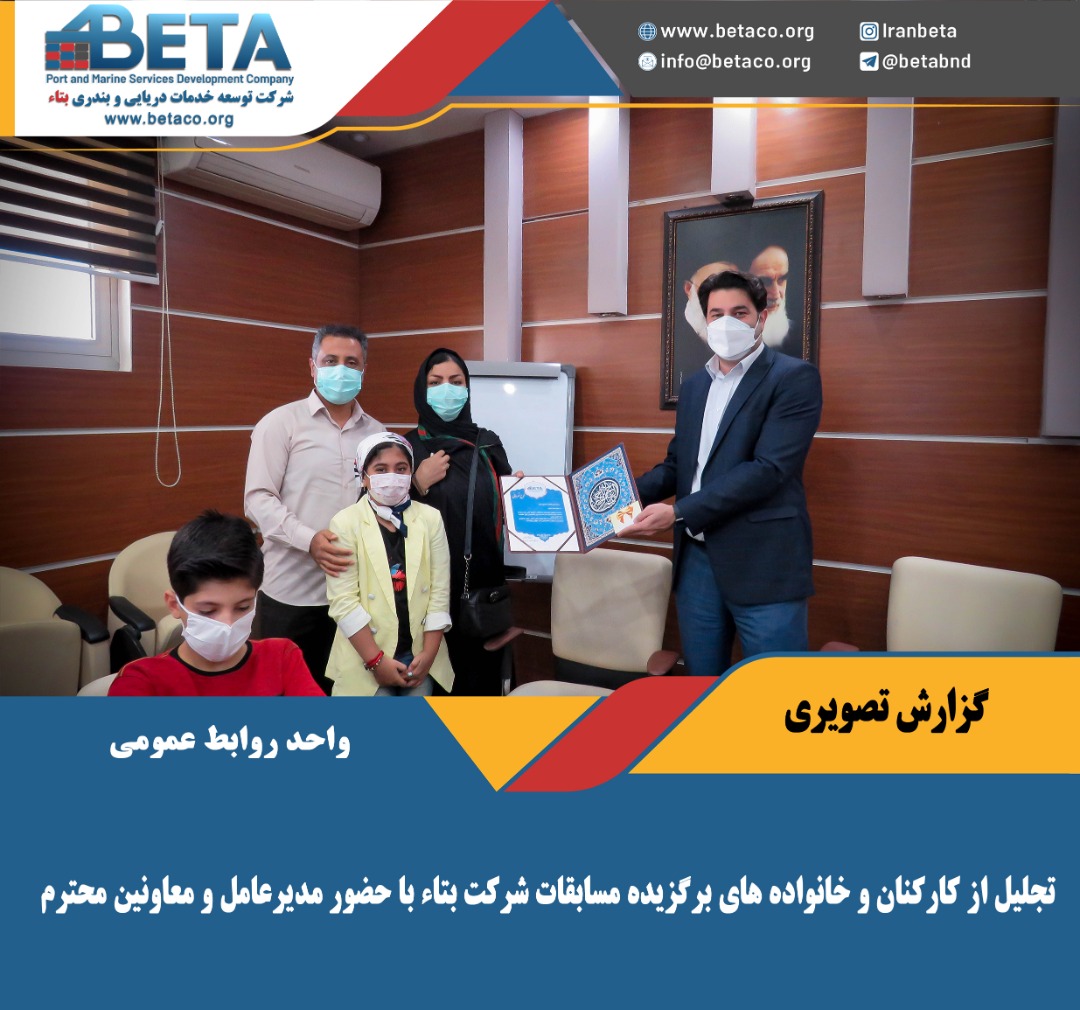 طی مراسمی با حضور مدیرعامل و معاونین شرکت بتاء از کارکنان وخانواده های برگزیده در مسابقات فرهنگی و ورزشی مجموعه تجلیل و قدردانی شد.
