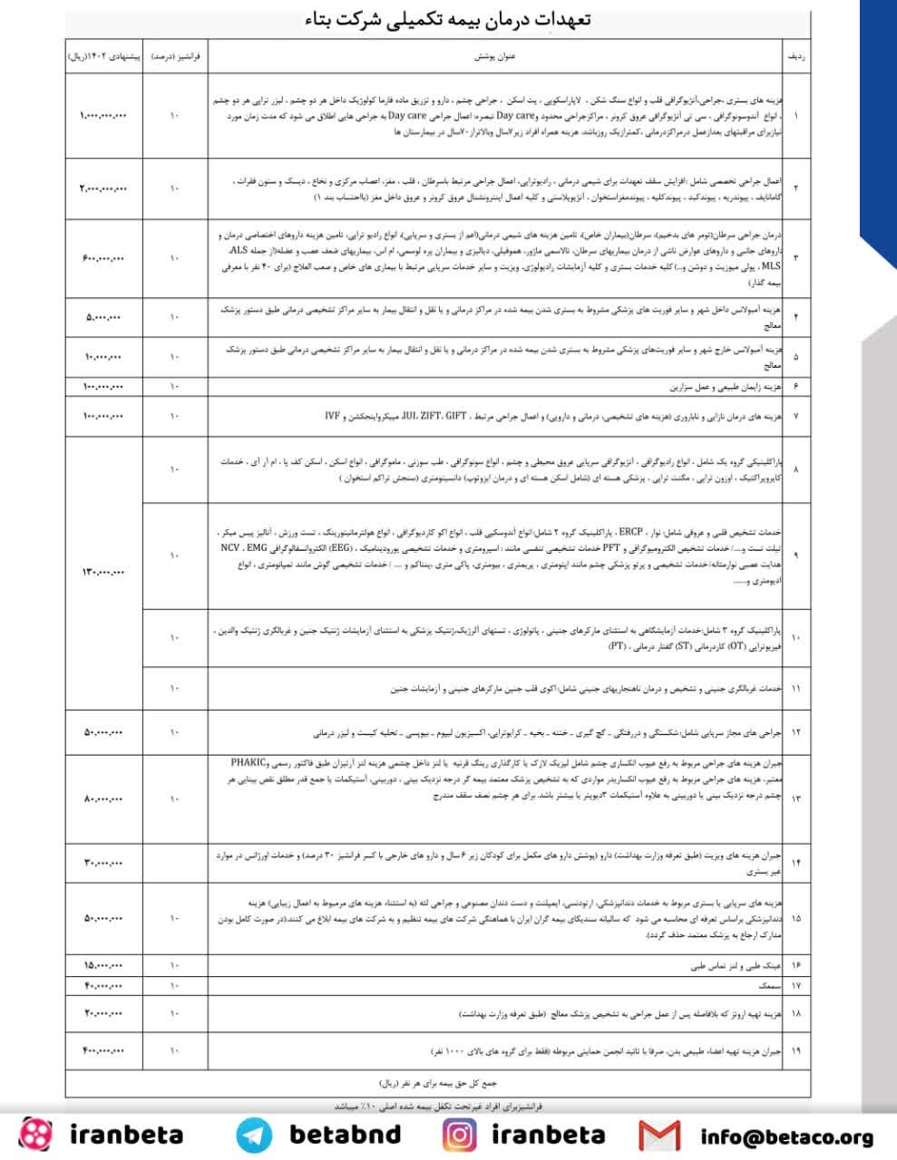 لیست مراکز درمانی همکاران و تعهدات مطابق پیوست است.