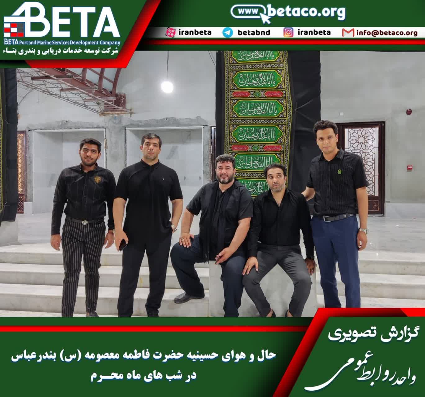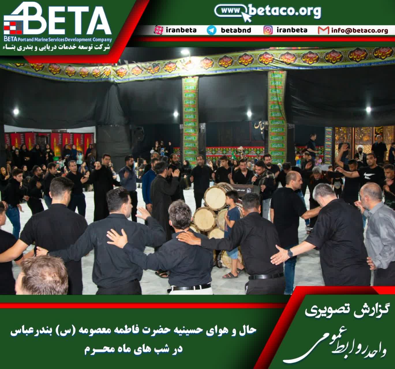 به گزارش روابط عمومی شرکت توسعه خدمات دریایی و بندری بتاء، شروع این برنامه ها به روال سنوات گذشته طی دهه اول محرم هر شب از ساعت هشت و نیم شب با خواندن روضهخوانی و سخنرانی روحانیت آغاز و با آئین سنتی سنج و دمام زنی کارکنان و سینه زنی محبان اهل بیت ادامه دارد.