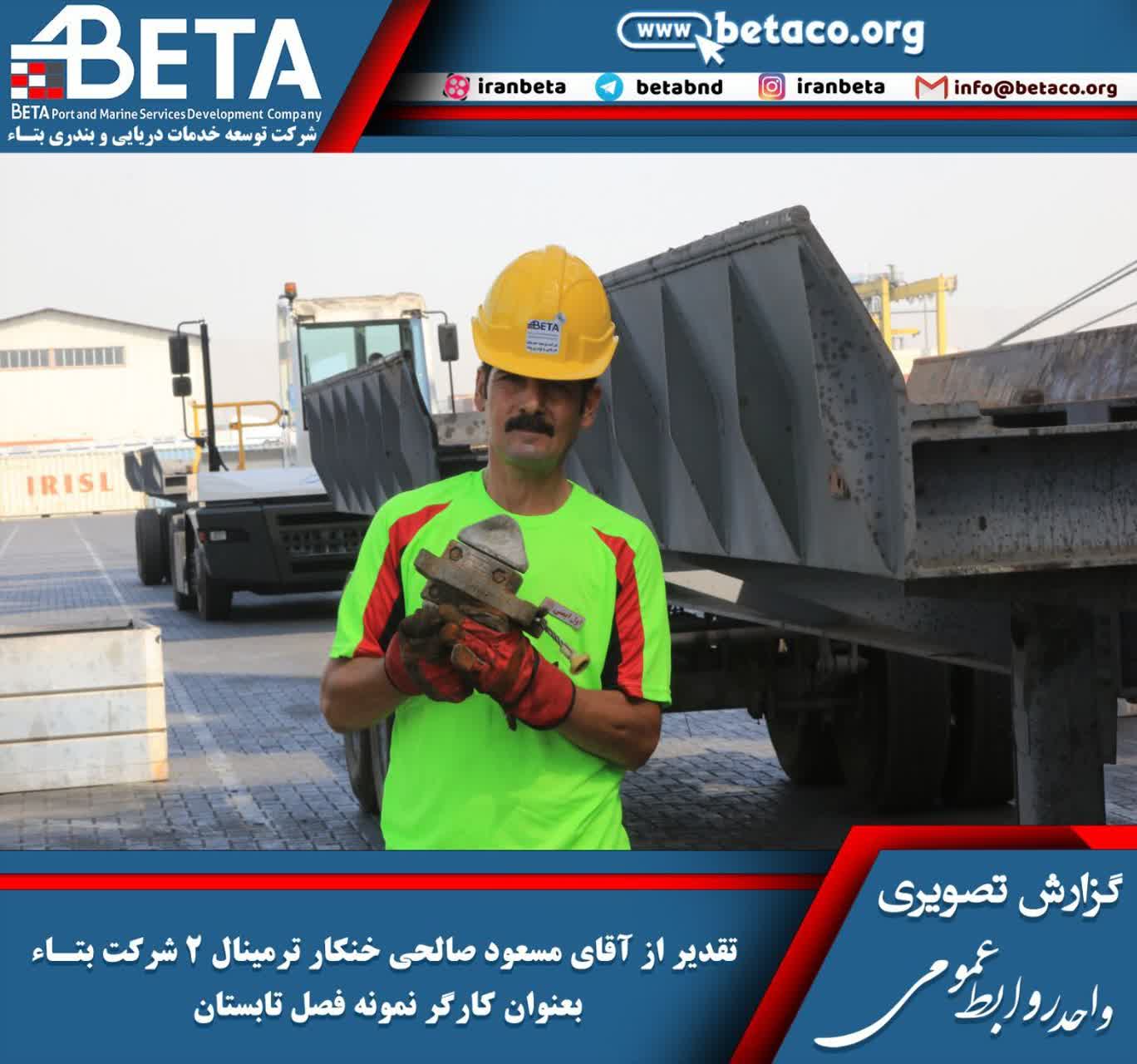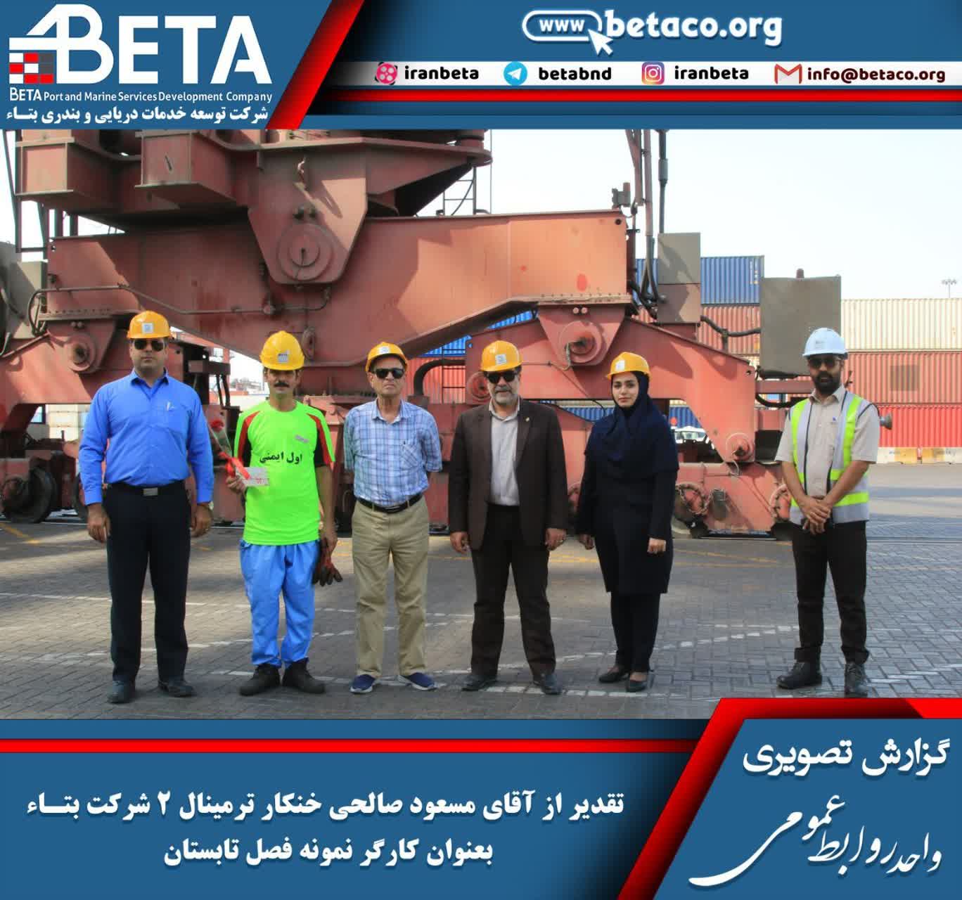 تقدیر از آقای "مسعود صالحی" خنکار ترمینال دو شرکت بتاء بعنوان کارگر نمونه فصل تابستان