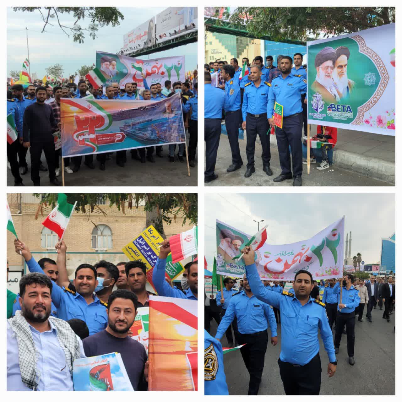 راهپیمایی باشکوه و گسترده همکاران شرکت در روز ۲۲ بهمن ۱۴۰۲ در شهر بندرعباس