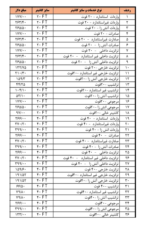 شرکت توسعه خدمات دریایی و بندری بتاء - THC کانتینر