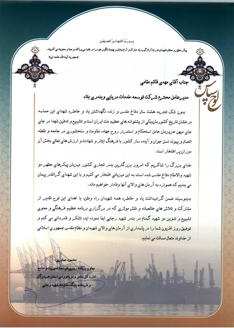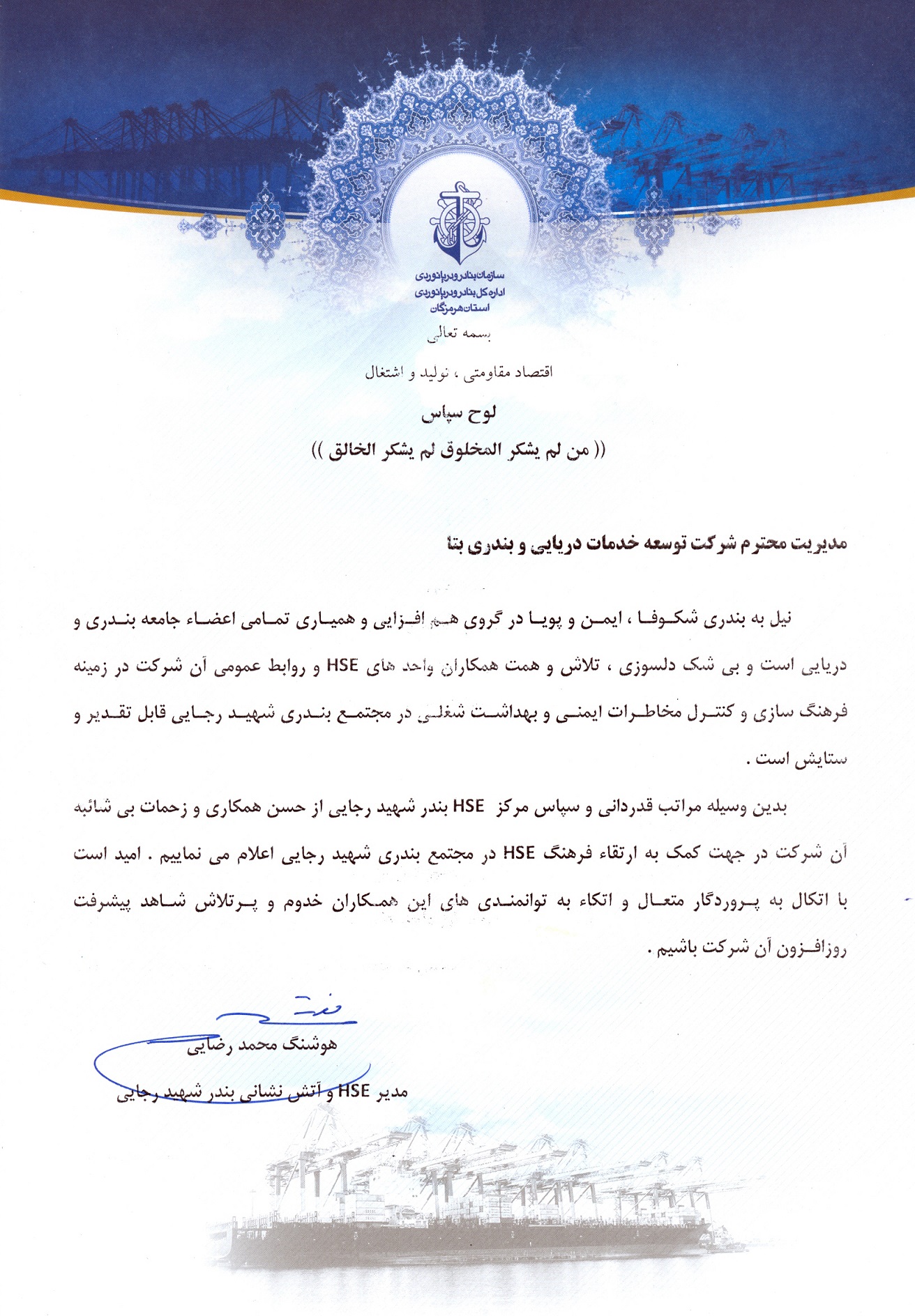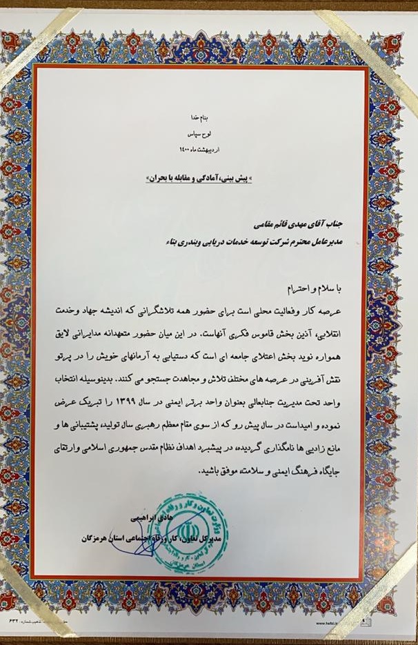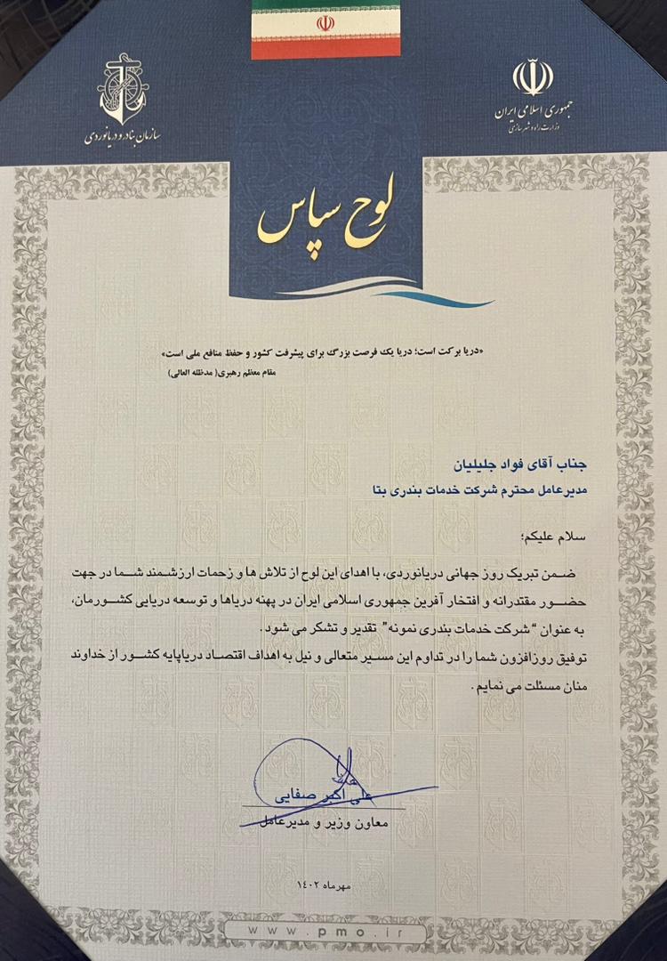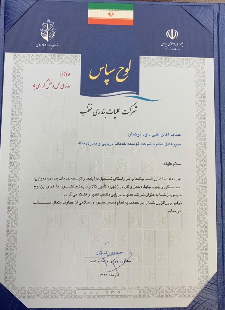شرکت توسعه خدمات دریایی و بندری بتاء - افتخارات