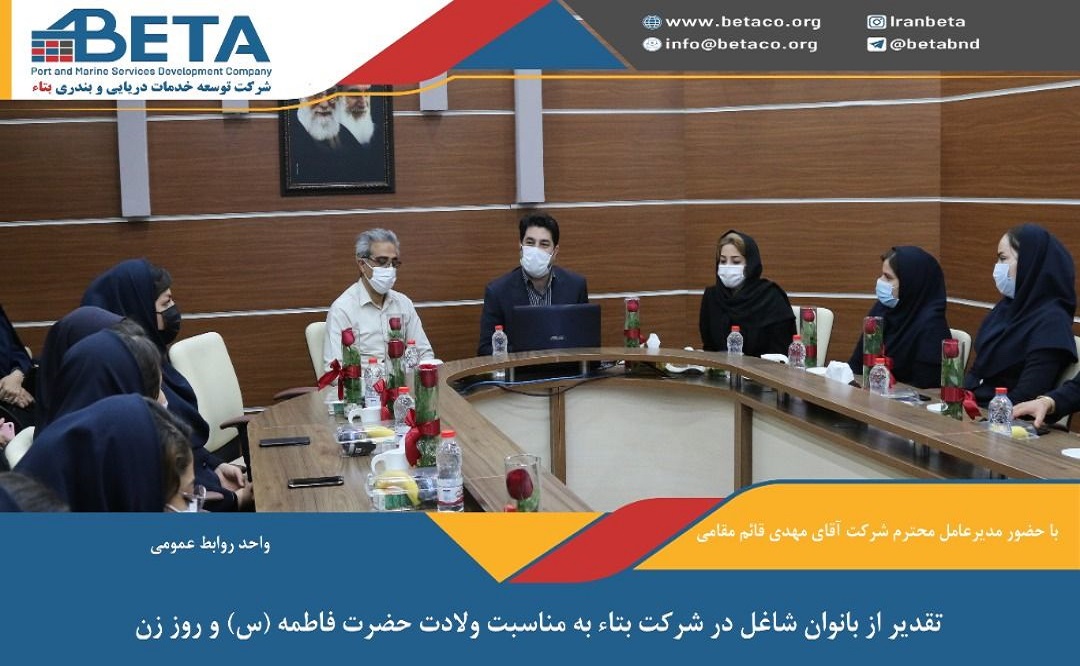 به مناسبت ولادت حضرت فاطمه (س) و روز زن با حضور مديرعامل محترم آقاي مهندس "مهدي قائم مقامي" از بانوان همكار در شركت توسعه خدمات دريايي و بندري بتاء تقدير شد.