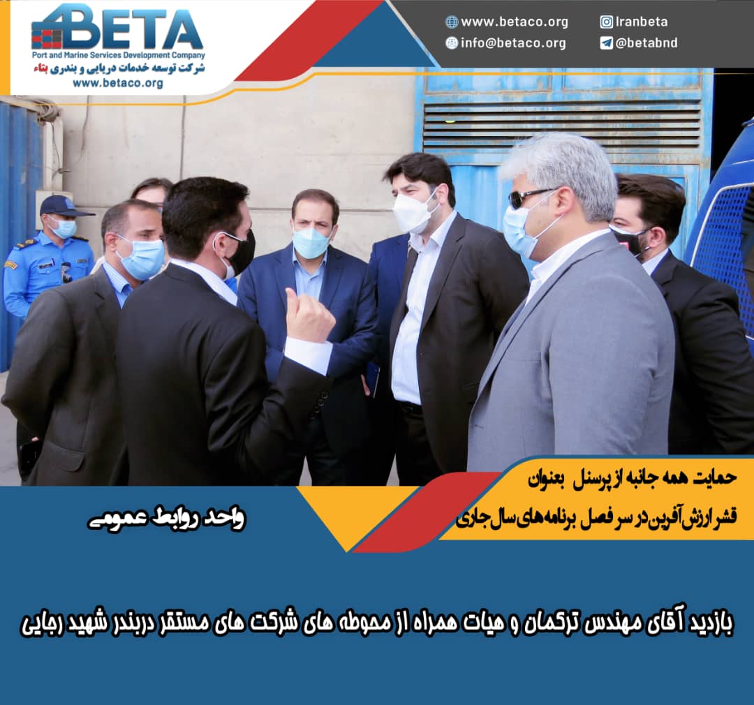 آقای مهندس علی داود ترکمان مدیرعامل هلدینگ به همراه اعضای هیات مدیره در سفری دو روزه به بندر شهید رجایی ضمن بررسی فعالیت ها و اقدامات انجام شده، از بخش های مختلف مجموعه بازدید کردند.