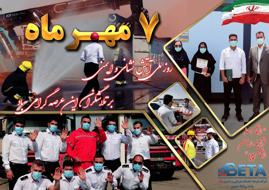 هفتم مهرماه روز ملی آتش نشانی و ایمنی بر تلاشگران این عرصه خصوصا همکاران باایمان، ایثارگر و دلیرمان در شرکت بتاء که همواره عاشقانه و با تعهد کامل، در محیط کاری از هیچ کوششی فروگذار نکرده اند، گرامی باد.