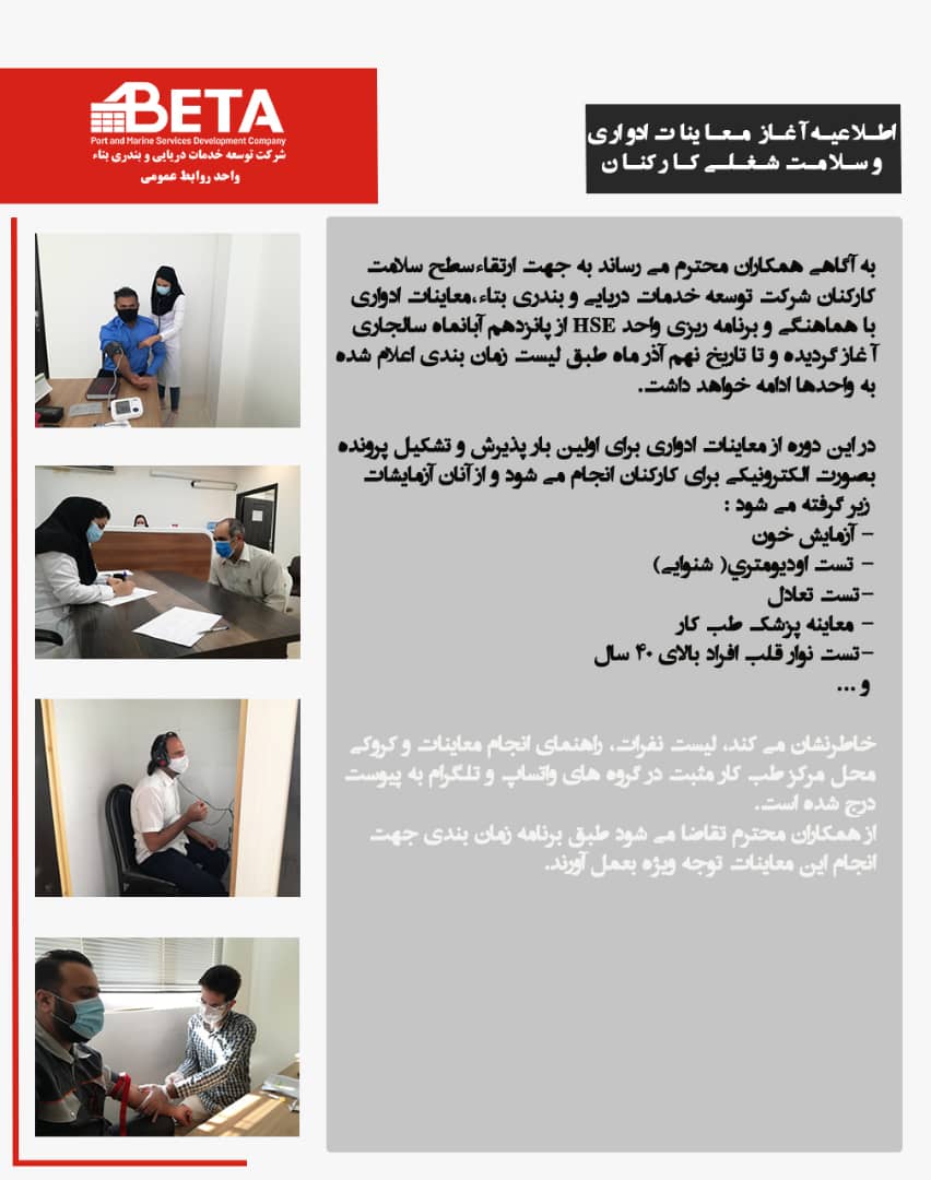 اطلاعیه آغاز معاینات ادواری و سلامت شغلی کارکنان