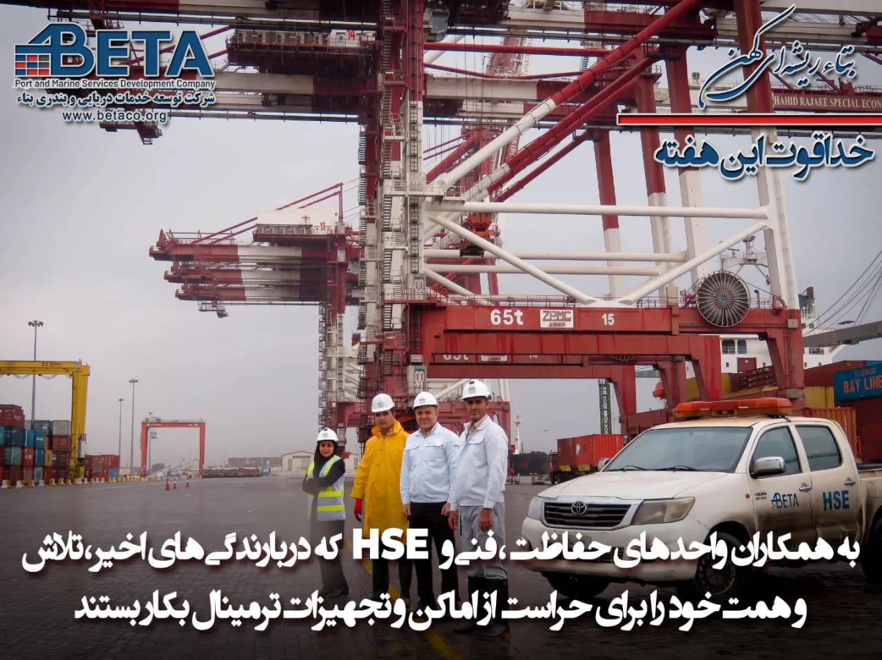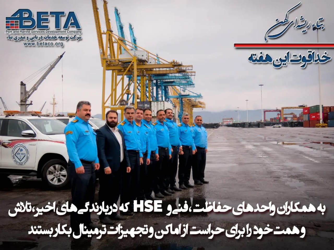 به همکاران واحدهای حفاظت، فنی و HSE که در بارندگی‌های اخیر، تلاش و همت خود را برای حراست از اماکن و تجهیزات ترمینال بکار بستند.