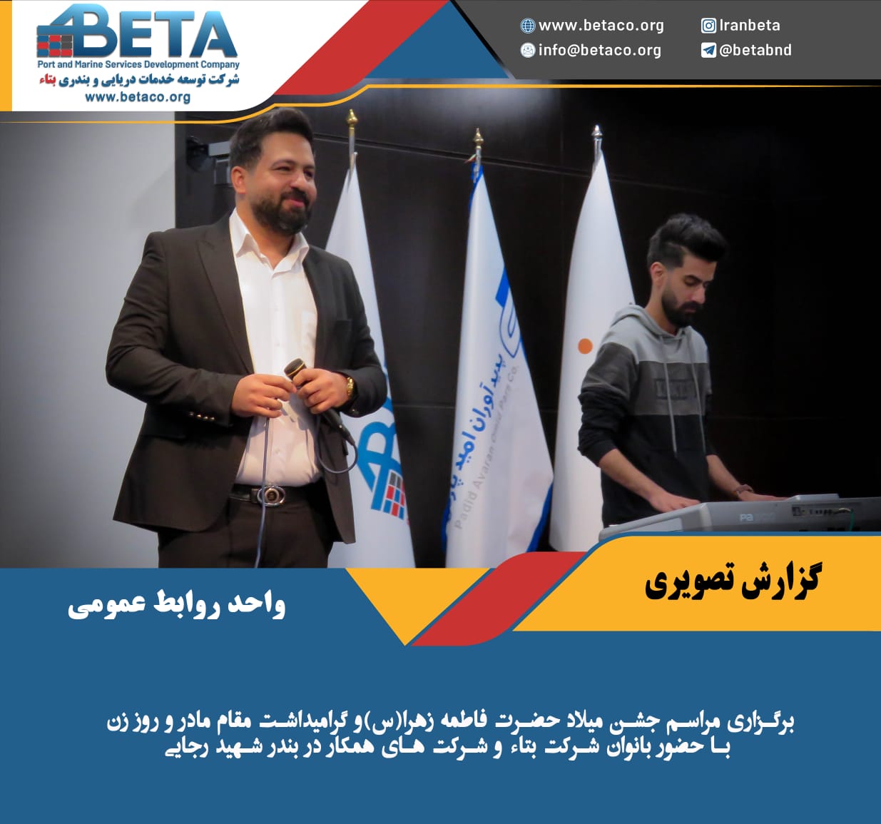 به مناسبت گرامیداشت روز زن و تجلیل از بانوان شرکت های بتاء، سهند، بکت و پدیدآوران، مراسمی با مضمون تقدیر از تلاش‌های همکاران در سالن آمفی تئاتر پایانه کانتینری بندرعباس آریا برگزار شد.