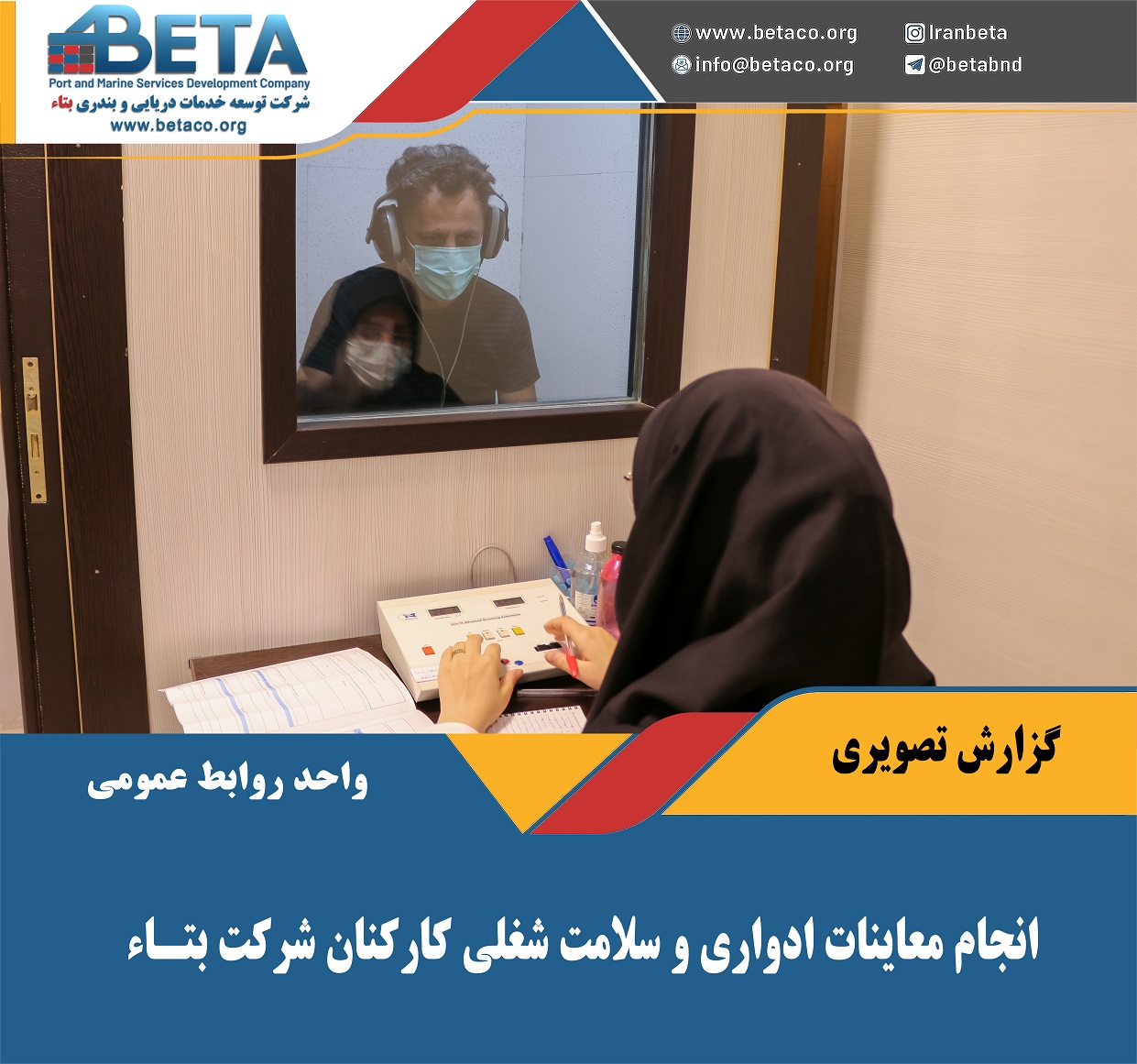 به گزارش واحد روابط عمومی شرکت بتاء ، آقای مهندس "فواد جلیلیان"گفت: با رعايت پروتكل هاي پيشگيري از انتشار ويروس كرونا، معاينات سلامت شغلي كاركنان بتاء شعبه بندر شهيد رجايي از نيمه دوم دیماه ۱۴۰۱ در مركز تخصصي طب كار آئین بندرعباس آغاز شد.