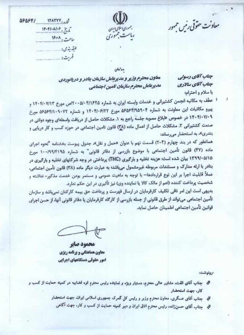 تحقق مطالبهای که بیش از یک دهه بهعنوان یکی از دغدغههای اصلی اپراتورهای بندری کشور مطرح بود، این موفقیت سرانجام با تلاشها و پیگیریهای منسجم سازمان بنادر و دریانوردی، اداره کل بنادر و دریانوردی استان هرمزگان، اتاق بازرگانی و اتاق تعاون، و همراهی فعالان بخش خصوصی بهویژه شرکت توسعه خدمات دریایی و بندری بتا به نتیجه رسید. بر اساس رأی و تأیید رسمی معاونت حقوقی ریاستجمهوری، فعالیتهای تخلیه و بارگیری شناورها از شمول ماده ۳۸ قانون تأمین اجتماعی خارج شده و بدین ترتیب یکی از مهمترین چالشهای مالی و ساختاری صنعت بندری برطرف شد.فواد جلیلیان، مدیرعامل شرکت توسعه خدمات دریایی و بندری بتا، در تشریح ابعاد این موفقیت گفت: «پس از ۱۲ سال پیگیری مستمر، منسجم و هدفمند، خوشبختانه توانستیم به نتیجهای تاریخی دست یابیم و مطالبه دیرینه اپراتورهای بندری در خصوص خروج فعالیتهای تخلیه و بارگیری شناور از شمول ماده ۳۸ قانون تأمین اجتماعی را رسماً محقق کنیم.»به گفته او، این دستاورد حاصل مجموعهای از اقدامات دقیق حقوقی، کارشناسی و صنفی بوده است؛ از مکاتبات متعدد و ارائه مستندات قانونی گرفته تا مذاکرات فشرده با نهادهای تصمیمگیر. جلیلیان تصریح کرد: «این موفقیت نتیجه همکاری نزدیک سازمان بنادر و دریانوردی ایران، اداره کل بنادر و دریانوردی هرمزگان، اتاق بازرگانی صنایع، معادن و کشاورزی ایران، اتاق تعاون، تشکلهای کارفرمایی کشور و کمیته حمایت از کسبوکار است. بدون همراهی این مجموعهها، طی کردن چنین مسیر دشواری امکانپذیر نبود.»
