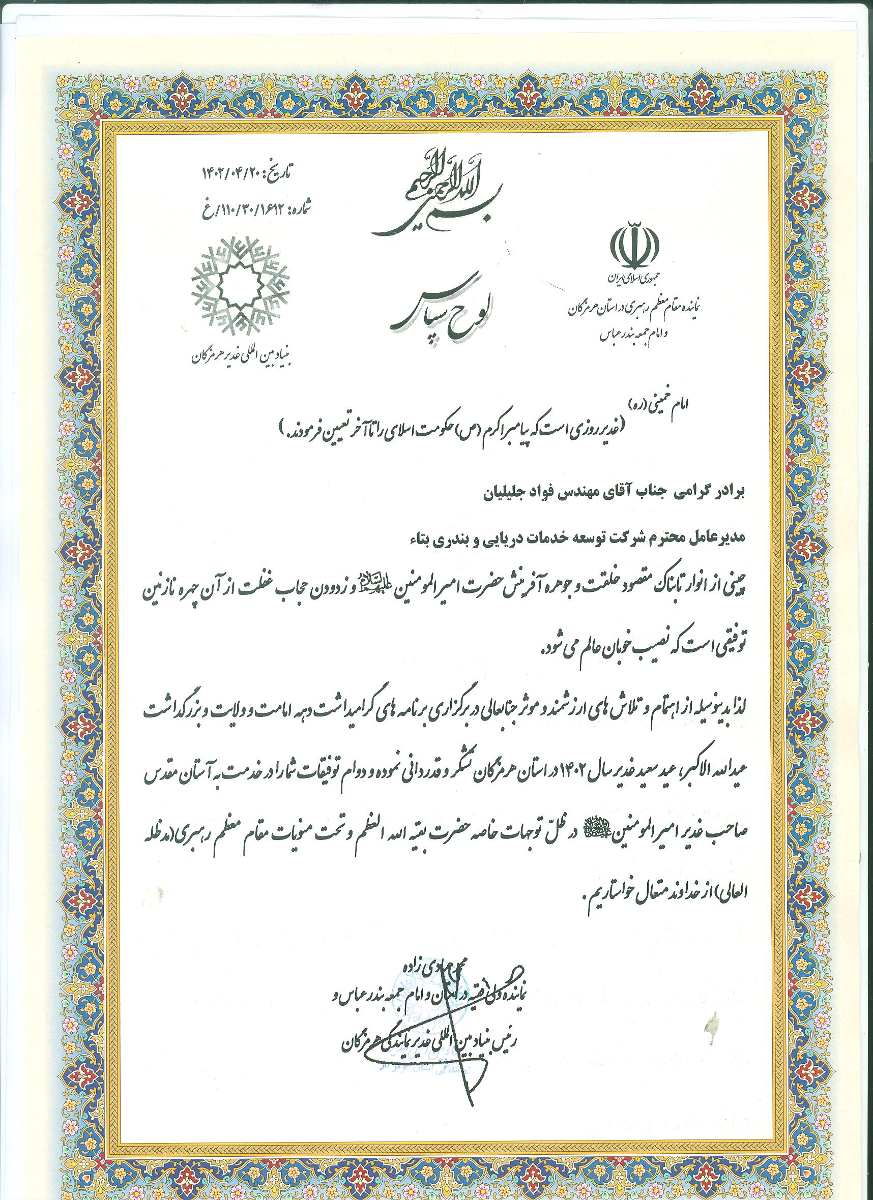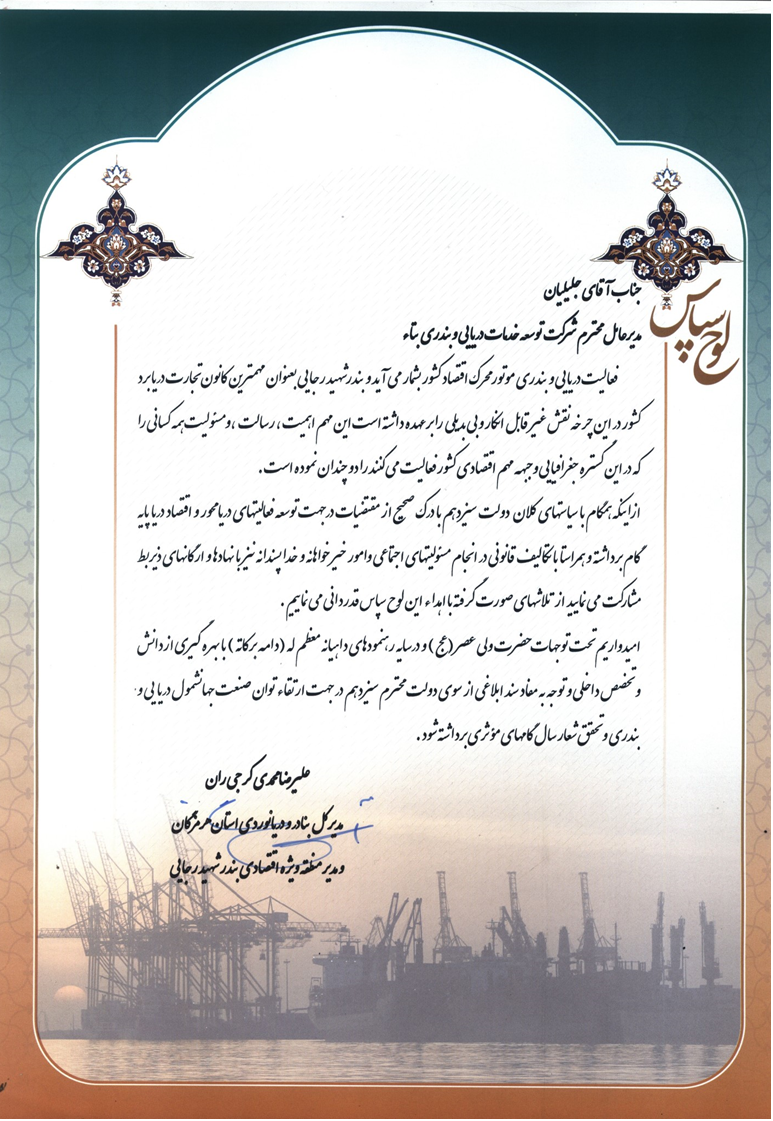 شرکت توسعه خدمات دریایی و بندری بتاء - افتخارات
